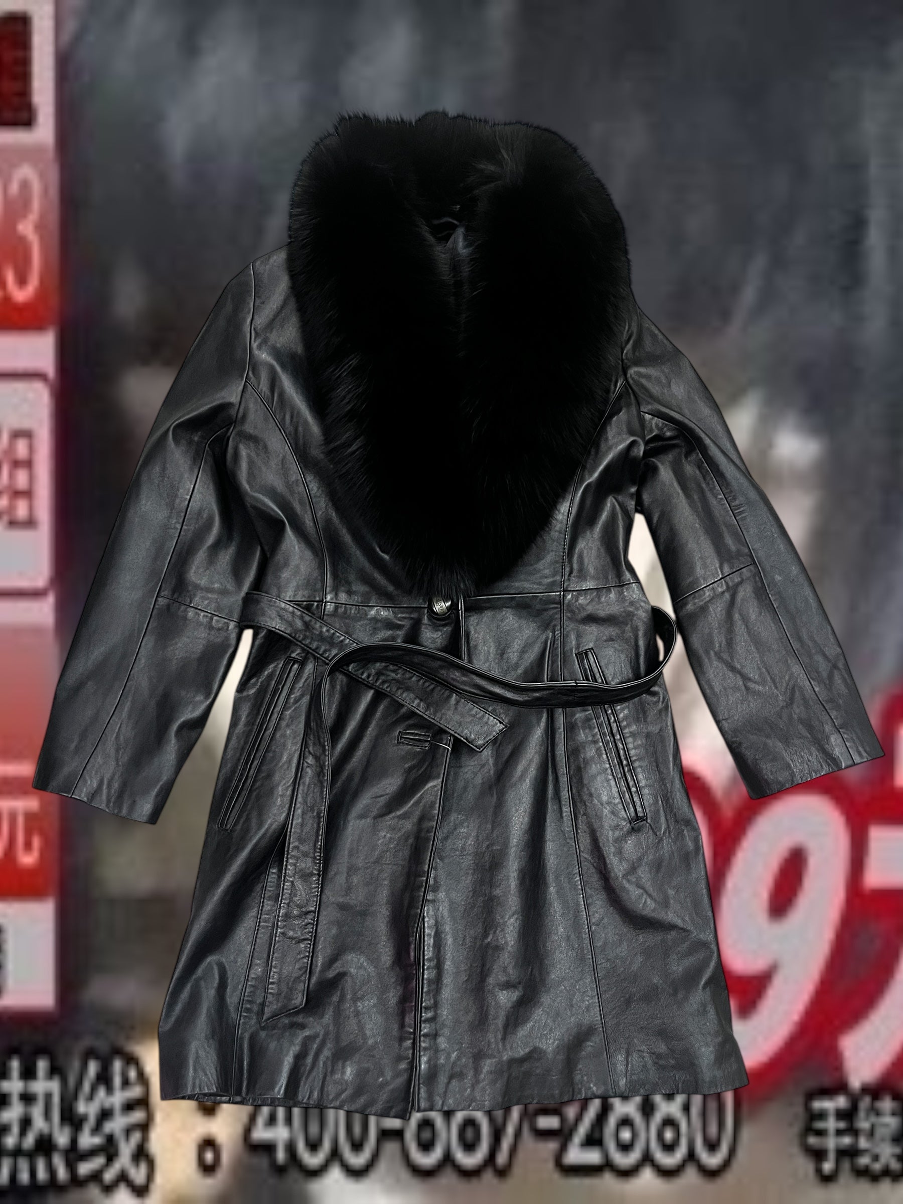 Fur Leather Coat #10377